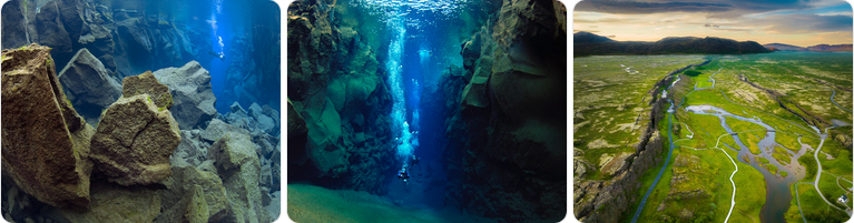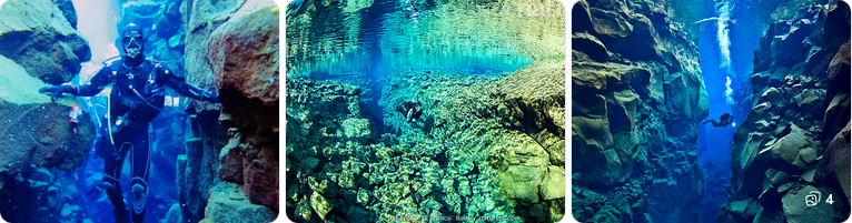 - Silfra Big Crack – this narrow entry channel clearly shows the plate boundary. The rock walls here are closest together, visually emphasizing continental drift.